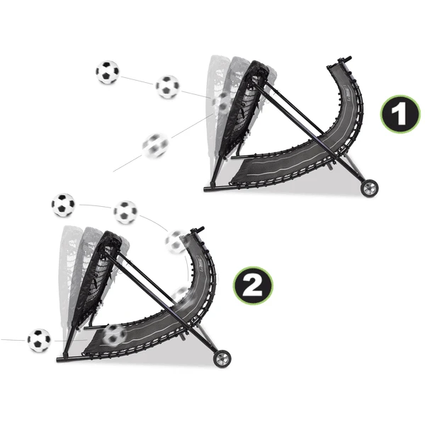 De EXIT Kickback Football Rebounder geeft je de mogelijkheid om in het net te schieten of eronder door te passen zodat de bal in een boog terugkomt. Koppen de bal daarna terug of maken de perfecte ontvangst. Deze rebounder van EXIT Toys is niet alleen leuk voor in de tuin, maar ook voor voetbalclubs. Daag jezelf uit met deze ultieme trainingspartner!