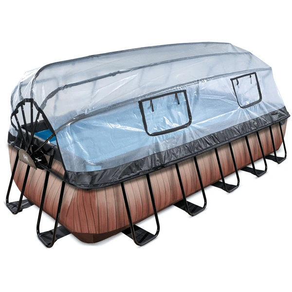 De Wood Pool heeft een modern en sterk steenpatroon op de zijwand en is daardoor een echte blikvanger in de tuin. De EXIT Pool heeft sterke 3-lagen wanden van PVC en polyester en de binnenkant van het zwembad is blauw voor dat frisse zwembadgevoel.