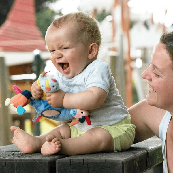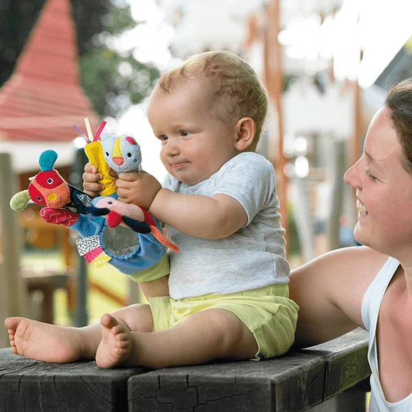 Hond, kat en paard op de handschoen COLOR Friends zijn de perfecte verhalenvertellers. De verborgen rammelaars, de pieper en de spiegel wekken met hun felle kleuren en gevarieerde materialen de nieuwsgierigheid van baby op en zorgen voor veel verrassingen. Baby’s volgen de bewegingen van de pop en luisteren gefascineerd naar het verhaal – de stoffen handschoen zorgt voor intensief contact tussen ouders, grootouders of broers en zussen en de baby. De speelhandschoen is een trouwe metgezel voor speels vermaak en fantasierijke verhalen – of het nu gaat om spelen thuis of als leuke activiteit op de weg in de auto.