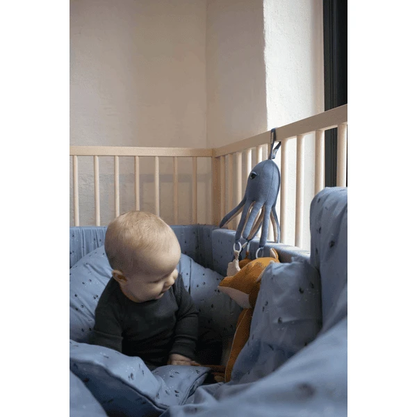 Otto de octopus, is een schattige handgebreide octopus die met zijn lieve gezichtje al snel een band met baby schept en met zijn vele details door de pasgeborene kan worden verkend. De octopus is een activiteitsspeeltje met ballen, belletjes, rammelaars met een knisperend geluid en een spiegeltje, alsook klittenband voor bevestiging.