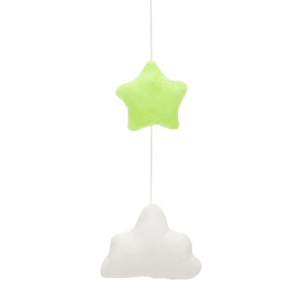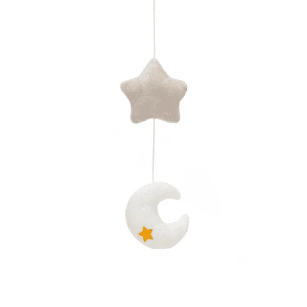 Het is ontworpen om uw kleine schat te helpen ’s avonds een diepe en rustige slaap te vinden en overdag kan uw baby kijken naar de dansende vormen en heldere kleuren. Het ontspant ook met de zachte melodie van Mozart’s “Lullaby”. De langzame beweging van de motieven in een cirkel, die worden aangedreven door een klein mechanisch muziekdoosje, heeft ook een rustgevend effect. De muziekmobiel heeft een mooie Design met kinderlijke motieven en past in elke kinderkamer.