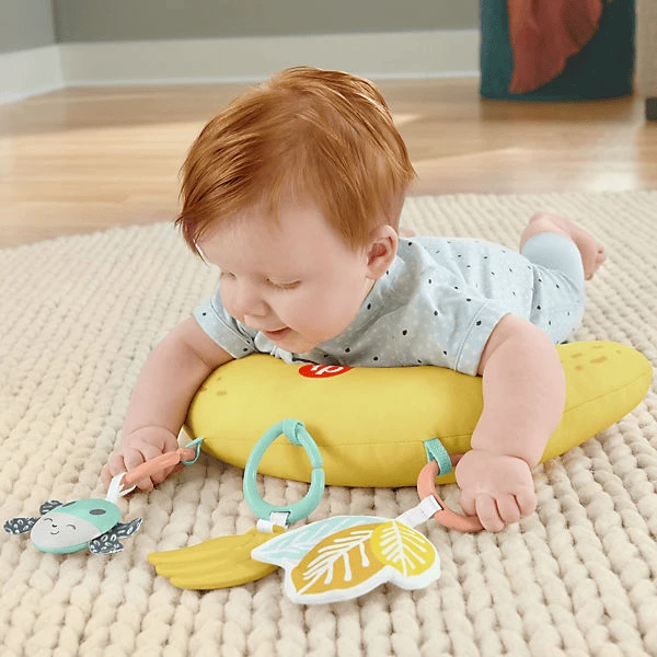 - Een schattig speelkussen in de vorm van een banaan geeft de kleintjes extra steun als ze in buikligging gaan spelen.