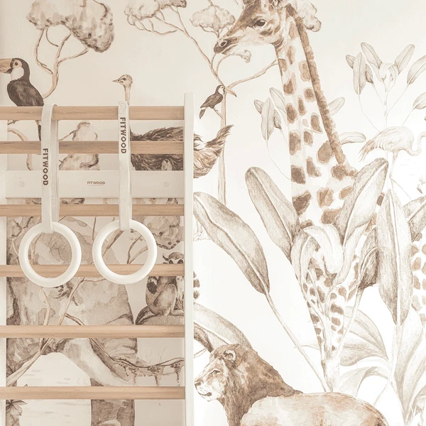 - De turnringen worden geleverd met duurzame FitWood banden waarmee de turnringen aan het plafond of bijvoorbeeld aan de TAIMI MINI wandstangen kunnen worden bevestigd.