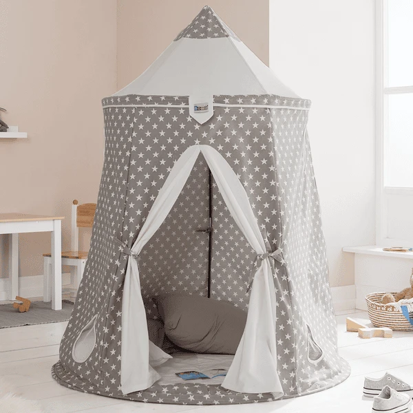 De speeltent is gemaakt van hoogwaardig 100% katoen. De tent is eenvoudig te monteren door middel van glasvezelstaven.