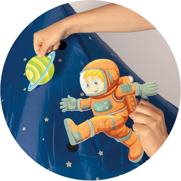 - De grote speeltent biedt een verscheidenheid aan speelmogelijkheden van rollenspel in de ruimte station tot een geheime speeltuin en toevluchtsoord om te dromen, te spelen en te ontspannen