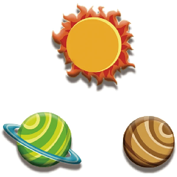 - Een astronaut, een Saturnus, een maan en een zon