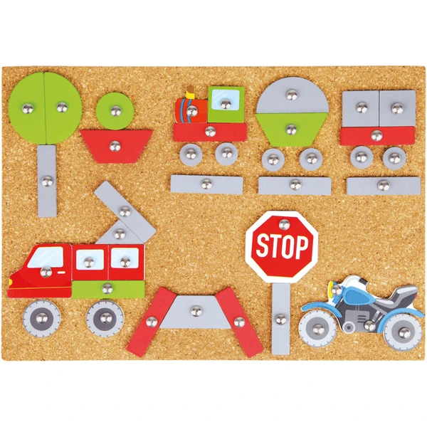 - Inhoud: 64 gekleurde platen hamer en spijkers, kurkplaat in de maat 28 x 19,5 cm, met een kurken plaat van 28 x 19,5 cm.