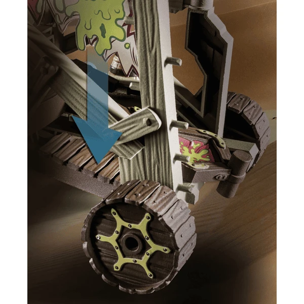 Op de dondersteen wordt de slijmachtige substantie onmiddellijk omgezet in gevaarlijke projectielen waar geen enkele aanvaller door geraakt wil worden.Met nieuw ontwikkelde mechanische lanceer- of katapultfunctie voor nog meer plezier!