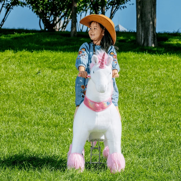 Kinderen bewegen gewoon hun voeten op en neer op de Pedal en rijden zo op deze unieke pony.