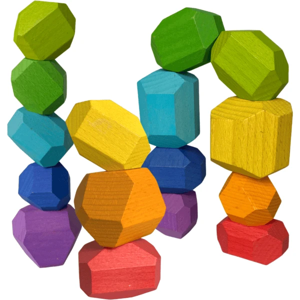 - Kinderen hebben de beste ideeën over wat ze kunnen bouwen met de houten balanceerstenen, stapelen is maar één variatie