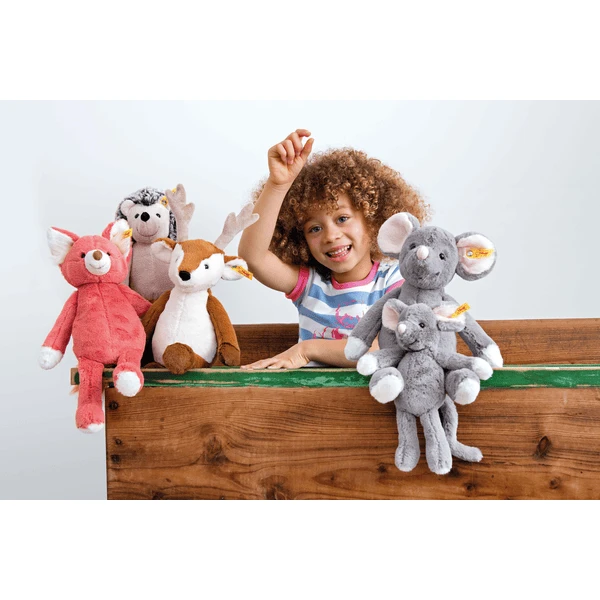 Hier komt een vriendelijke, nieuwe reisgenoot van de familie Soft Cuddly Friends : De 30 cm hoge Hedgy Hedgy Hedgehog. Zijn stekelige jurk, die de natuur imiteert, is gemaakt van langer knuffelzacht, beige en grijsachtig pluche. De zolen van de poten steken in donkerbeige af tegen de rest van het lichaam in beige met een accent. De neus en de geborduurde mond zijn zwart. De kleine gegranuleerde zakjes in de billen, armen en benen ondersteunen de vroege kindergevoelens van de aanraking.